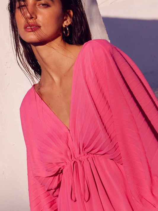Into You Accordion Pleated Kimono Mini Dress Bubble Gum