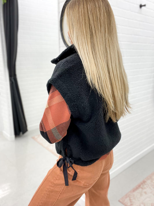 This Day Sherpa Vest Tie-Up Side Detail Black