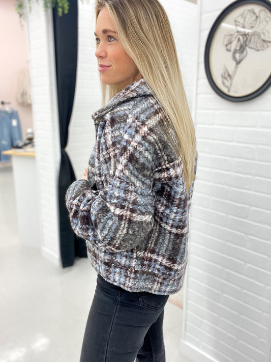 More Than Enough Plaid Teddy Jacket Winter Frost
