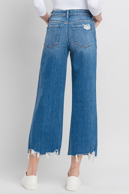 The Claire High Rise Crop Wide Leg Jeans Medium Dark