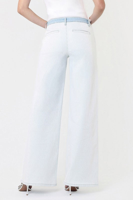 The Olivia High Rise Wide Leg Pinstripe Jeans Light Wash