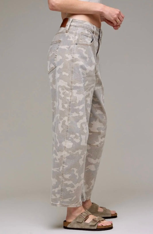 Hidden Sammie High Rise Camouflage Cropped Barrel Jeans Tan