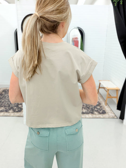 Double Down Wide Leg French Terry Pants Mineral Green