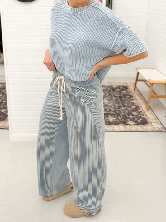 Boardwalk Dreams Striped Drawstring Pants Denim Blue