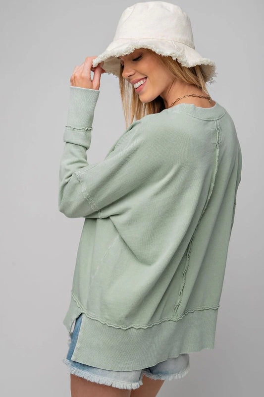 Count On It Mineral Wash Crew Pullover Sage Extended
