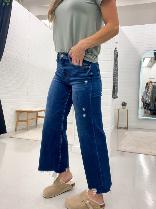 The Stacy High Rise Crop Wide Leg Jeans Dark Wash