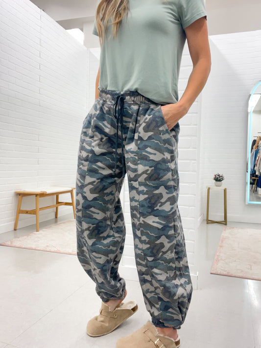 Happy Camper Camouflage Barrel Fleece Sweatpants