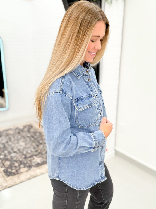 From The Top Washed Button Down Jacket Denim Wash 3X