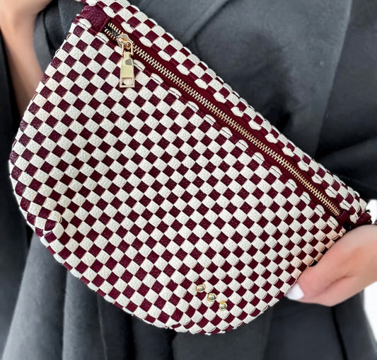 The Westlyn Woven Bum Bag Checkered Burgundy