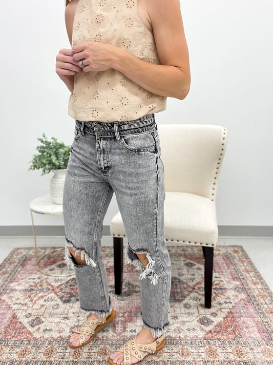 The Beverly High Rise Straight Crop Denim Gray Wash