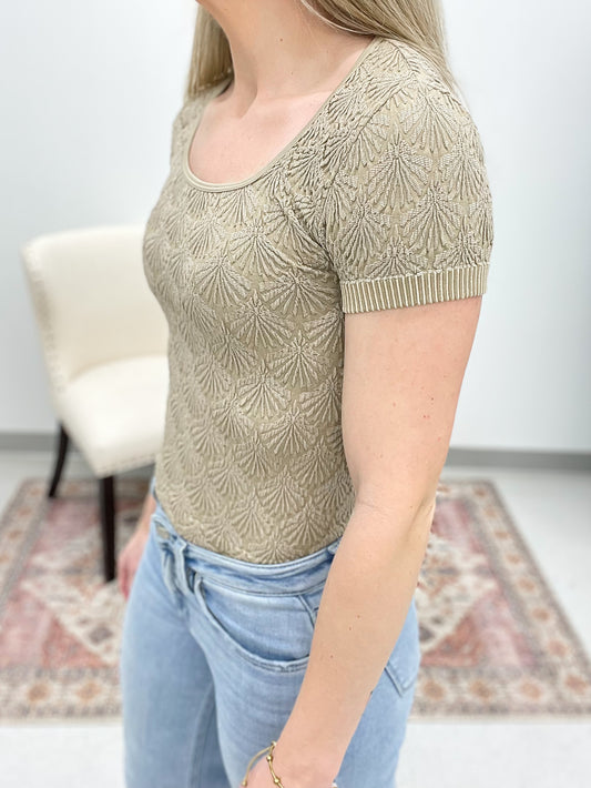 Textured Seamless Jacquard Scoop Neck Tee Taupe Small