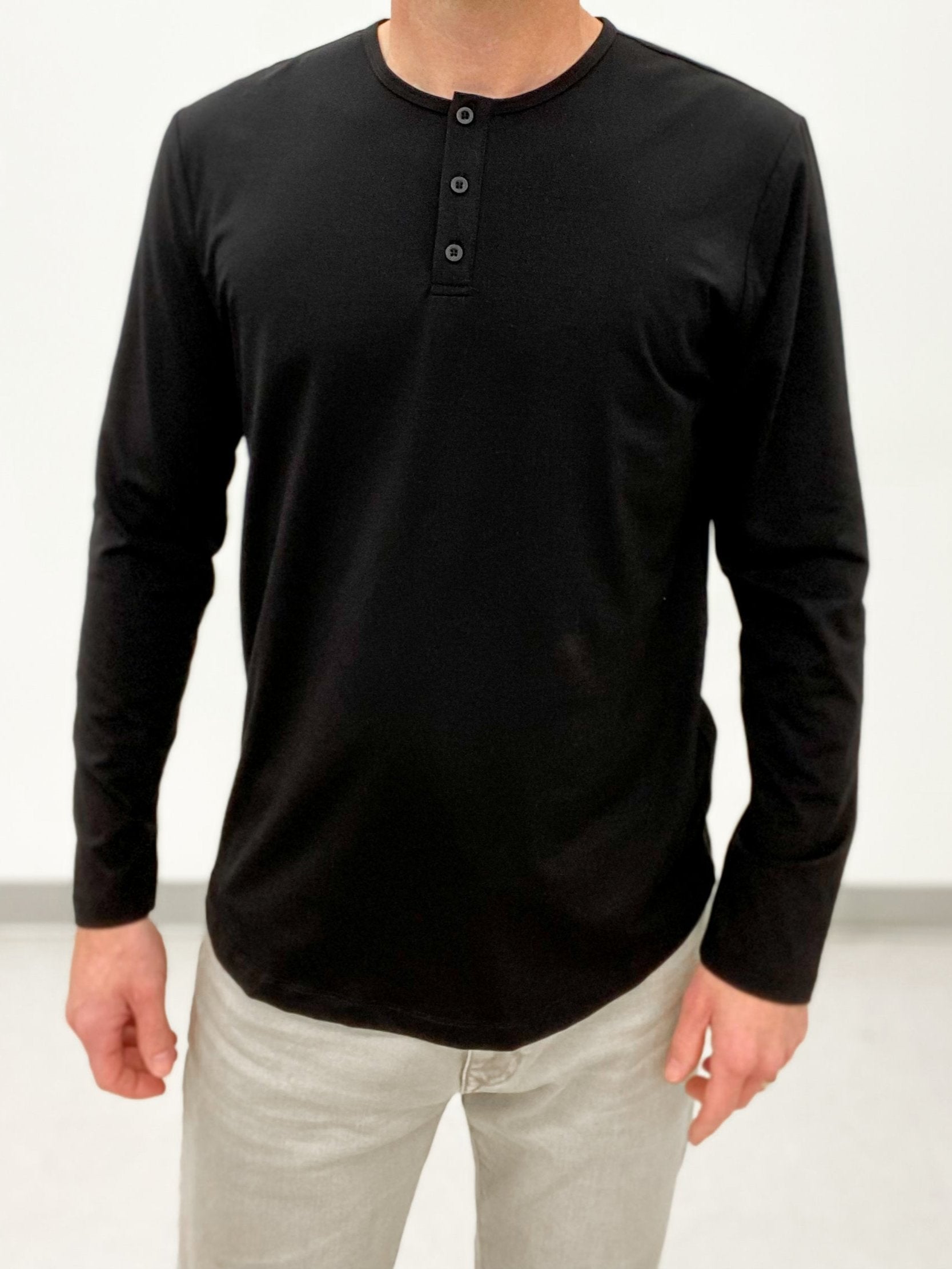 Cuts AO Long Sleeve Henley Curve-Hem | Black Signature-fit PYCA Pro®