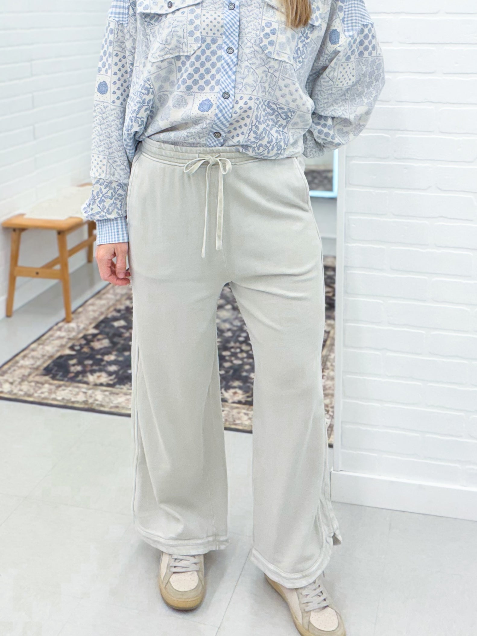 Effortless Cropped Mineral Wash French Terry Pants Ecru