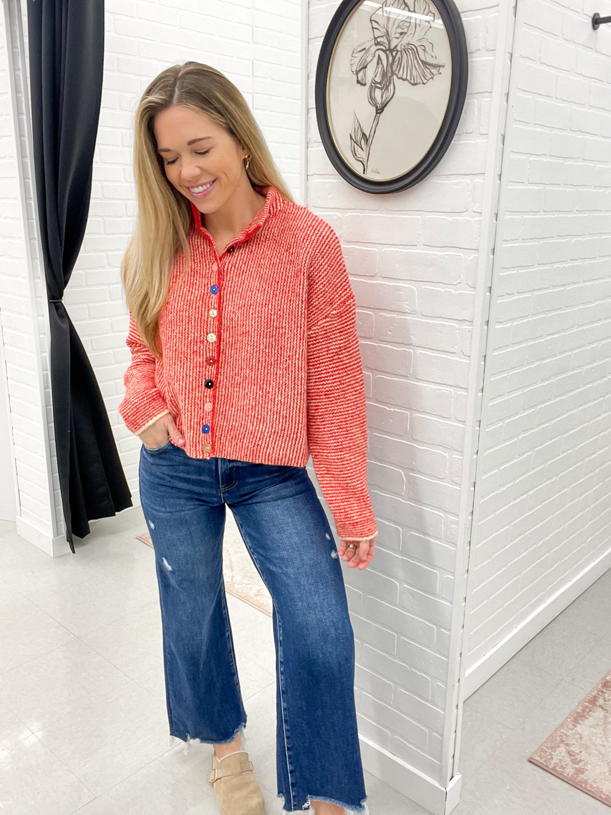 Elevate your seasonal style with this show-stopping sweater that blends cozy comfort with contemporary flair. The ivory base pairs perfectly with rich red accents, while the standout button detailing adds an unexpected twist that keeps things fresh and fashion-forward. Perfect for holiday gatherings or casual weekend vibes, this piece proves that timeless sweaters can absolutely have a modern edge. Layer it, style it, love it—this is the sweater everyone will be asking about.