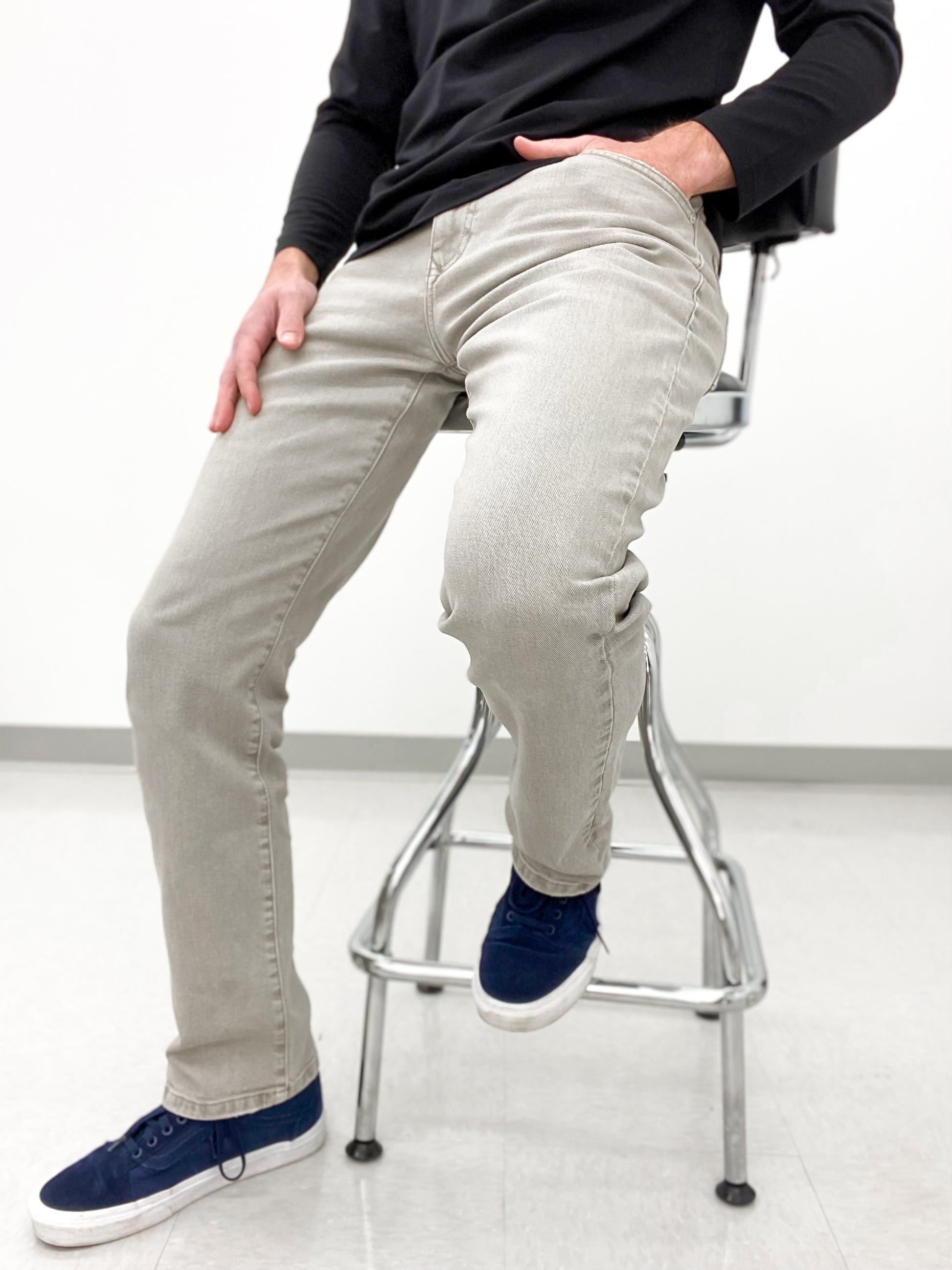 Men's Slim Straight Jeans Light Grey Stone Wash
