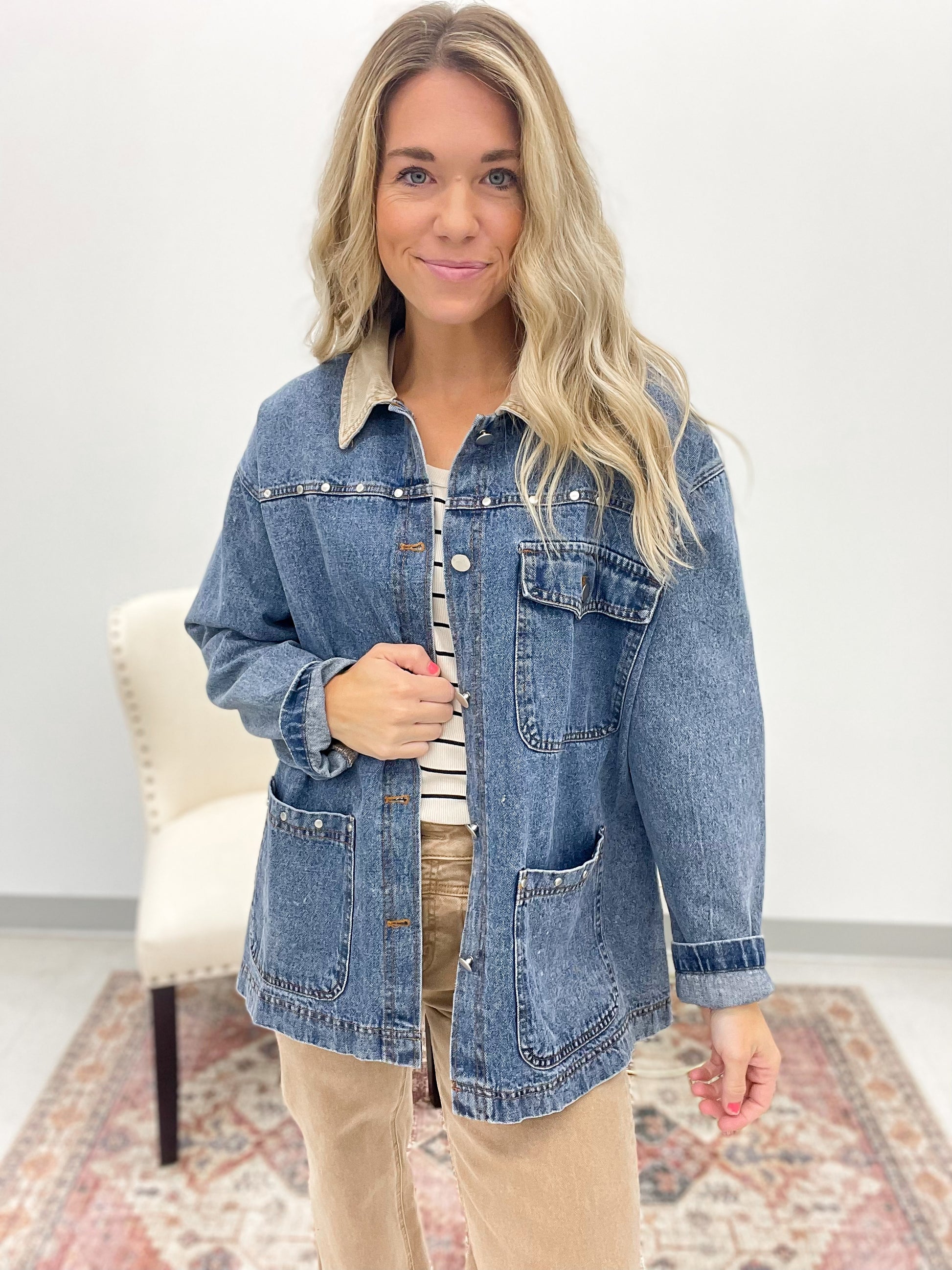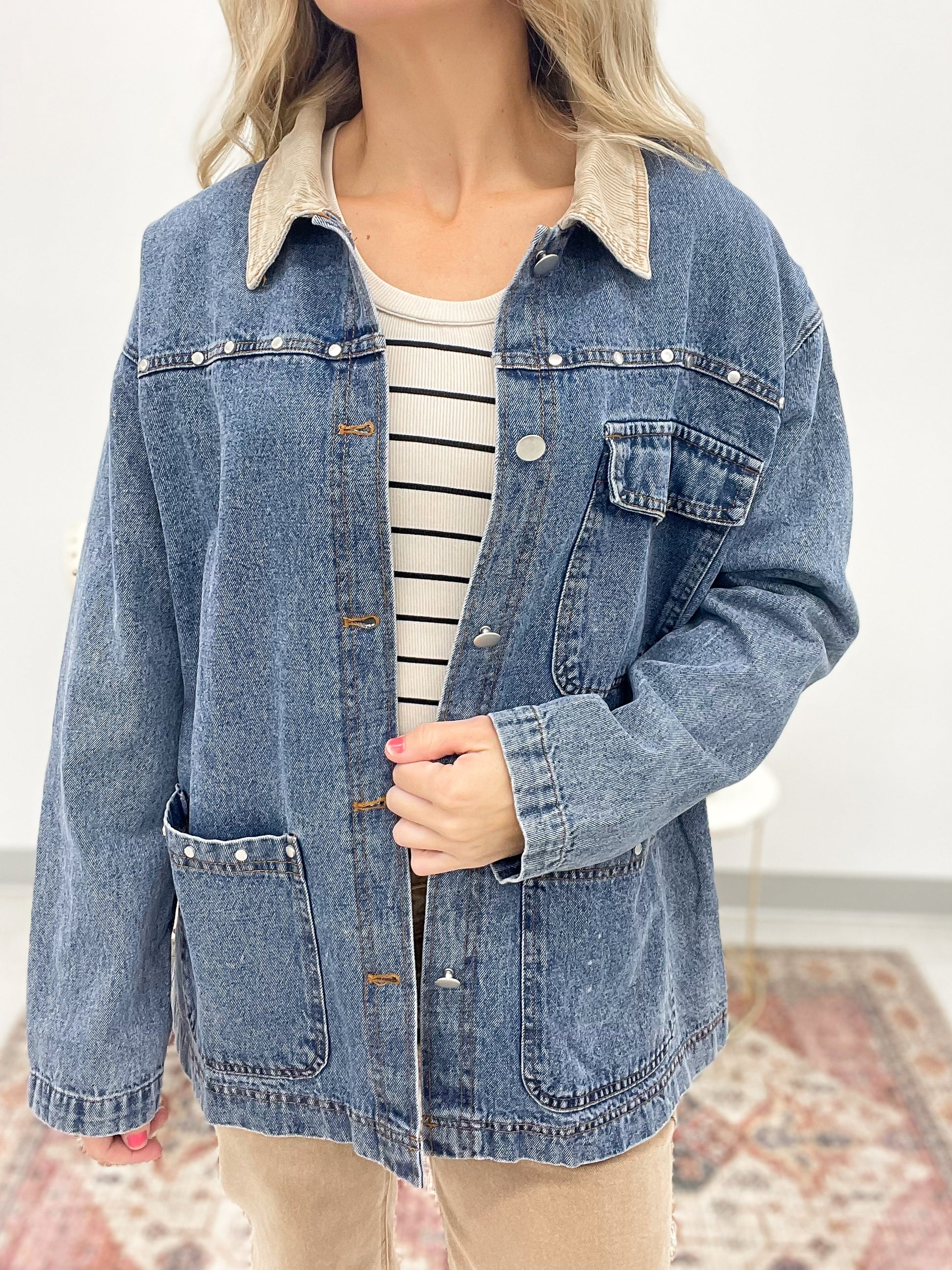 Saddle Up Stud Detail Denim Barn Jacket