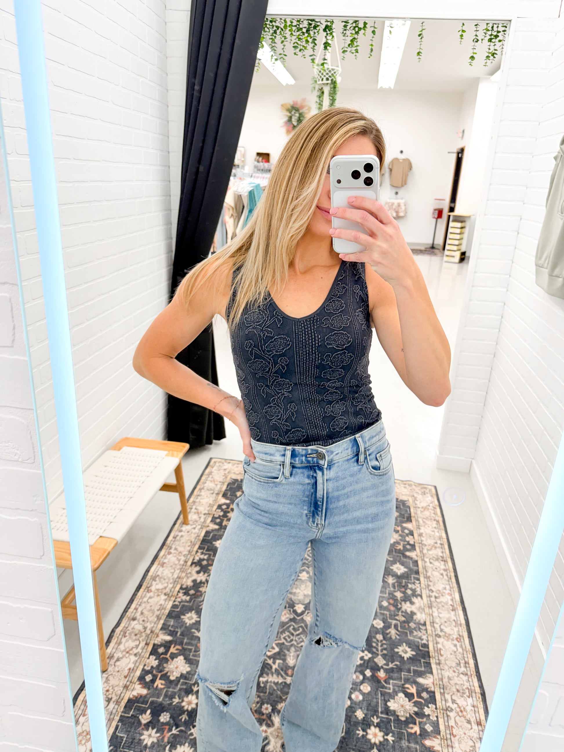 Elevate your style with the Stay True Floral V-Neck Seamless Tank in Charcoal! Featuring a stunning floral detail, this seamless design offers versatility—perfect for layering or wearing solo. Experience comfort and beauty that inspires confidence every day. Embrace your true self!