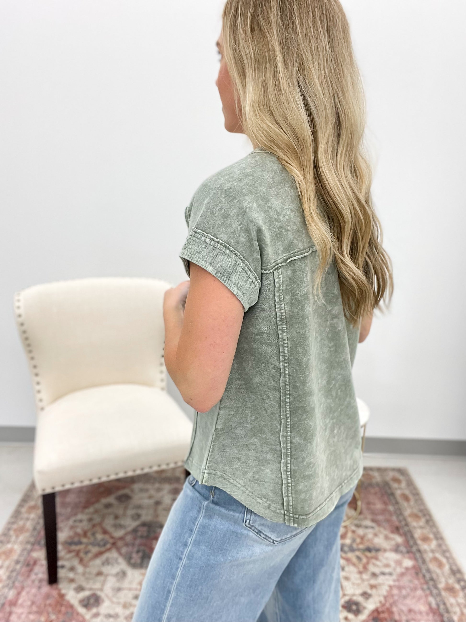 Stay True Washed Henley Top Olive Small