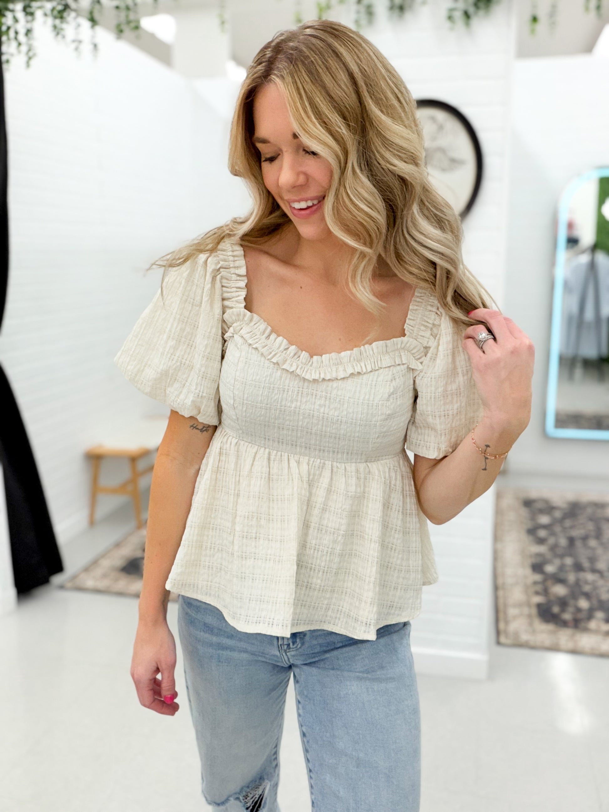 Elevate your wardrobe with this elegant organza blouse featuring a romantic ruffle neckline that frames the face beautifully. The empire bust design creates a flattering silhouette while the soft, sheer organza fabric adds an ethereal touch. Fully lined for comfort and coverage, this versatile piece transitions seamlessly from casual daytime wear to evening occasions. The bone hue offers a timeless, neutral palette that pairs effortlessly with any outfit.