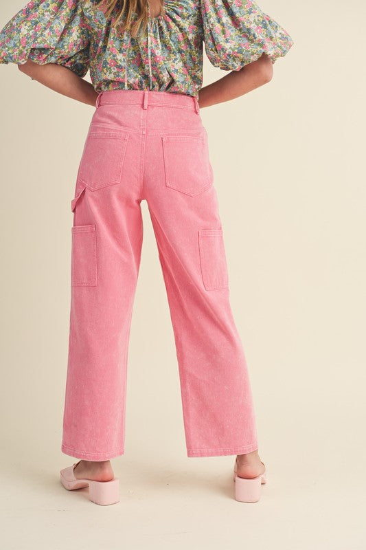 Sweet Pea Mineral Wash High Waist Straight Leg Pants Pink