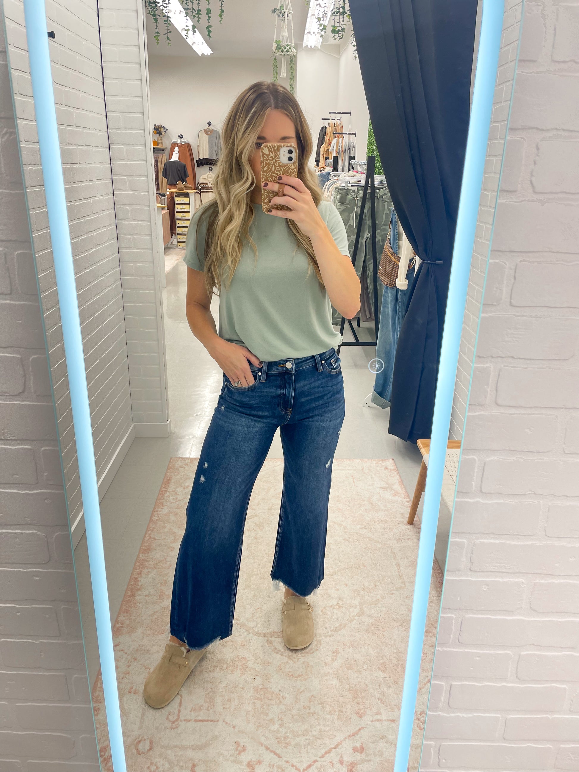 Experience ultimate comfort with the Stacy High Rise Crop Wide Leg Jeans from Risen. Designed with a trendy distressed ankle hem, these dark wash jeans offer a relaxed yet stylish fit that moves with you all day. Perfect for elevating your casual wardrobe, they combine fashion and ease effortlessly.