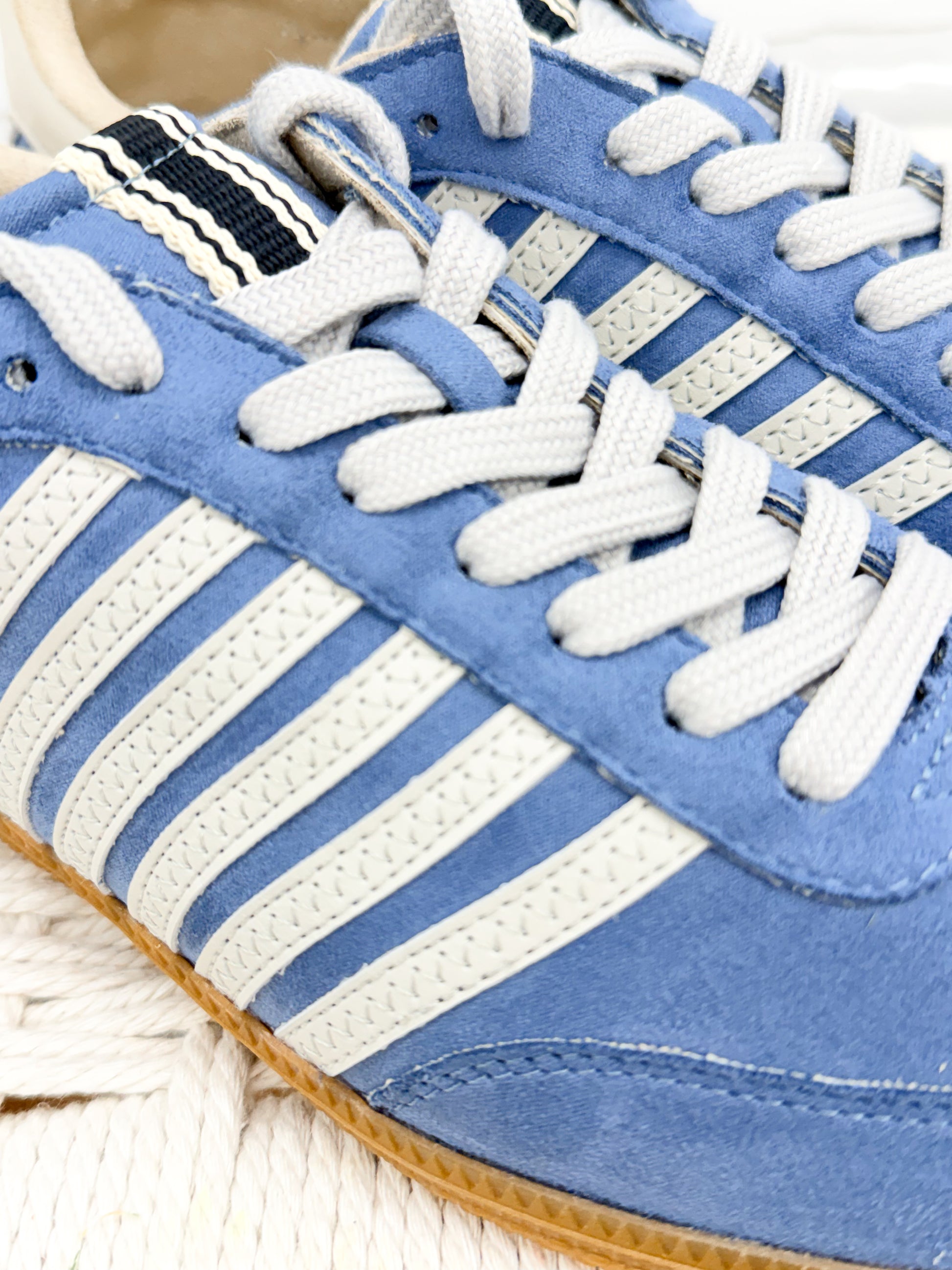 Meet the STEVIE in Blue Suede—a retro sneaker that proves sleek doesn't mean boring. Crafted with luxe suede fabric in a soft denim blue color, this gorgeous silhouette commands attention while remaining effortlessly versatile. Whether you're pairing them with casual denim or dressing up tailored trousers, the STEVIE elevates any outfit with understated sophistication. Clean lines, timeless appeal, and a bold color that makes them impossible to ignore—this is elevated basics done right.