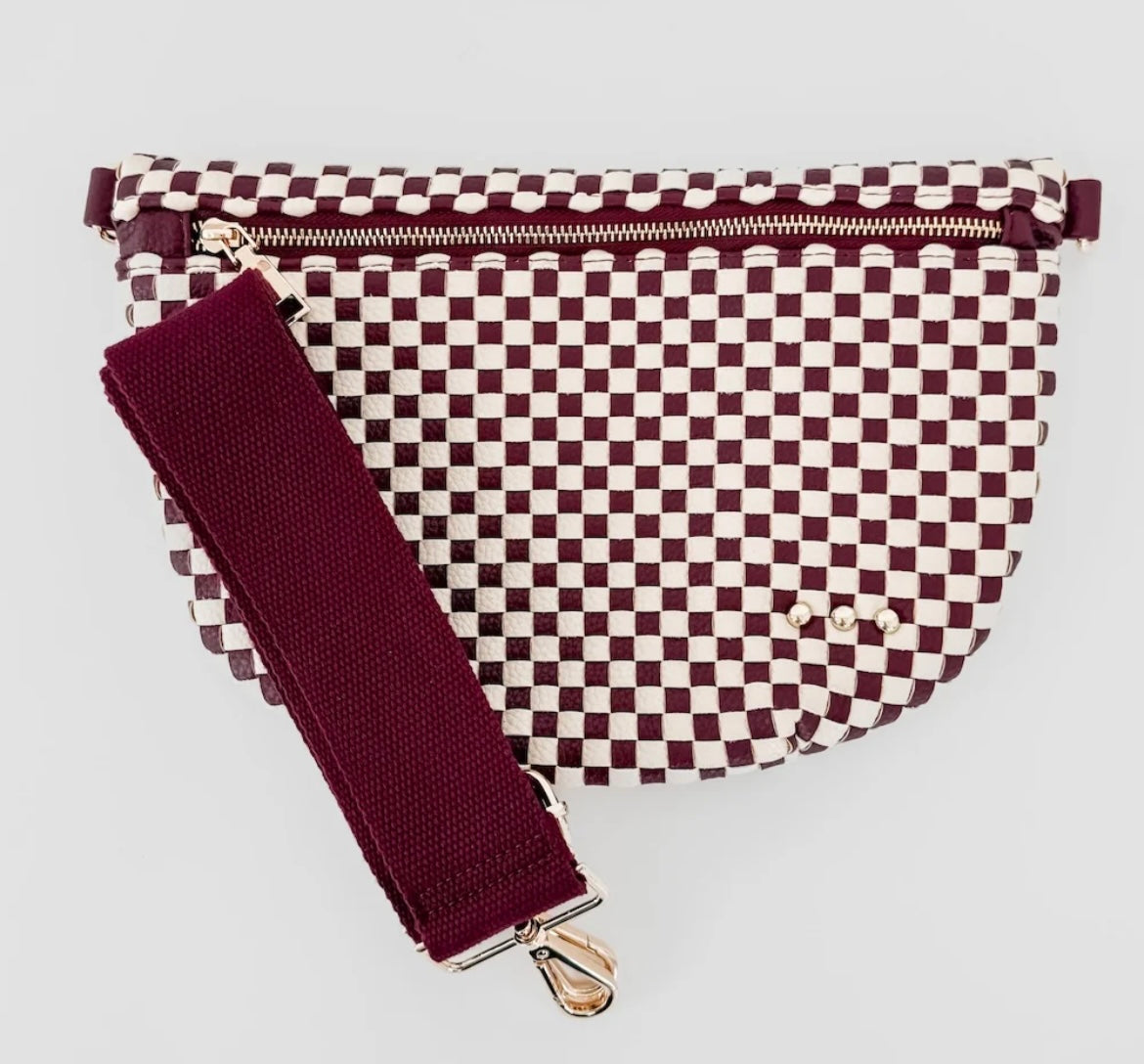 The Westlyn Woven Bum Bag Checkered Burgundy